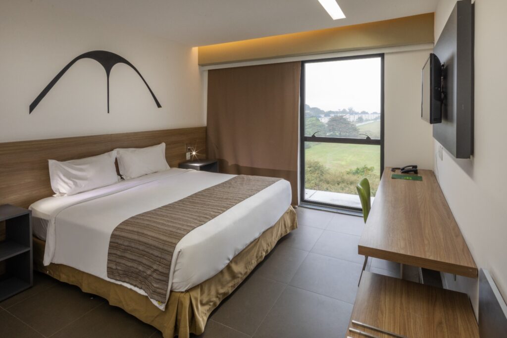 Quanto às acomodações, o Linx dispõe de diferentes categorias, mas todas igualmente idealizadas para o máximo de conforto e praticidade. No total, 162 apartamentos, em seis andares de um prédio contemporâneo e bem localizado, ajudam a compor um hotel bonito e seguro. Camas king size, ar-condicionado, TV LED de 32″ a cabo e frigobar e um enxoval clean (em tons claros) dão conforto e atendem à exigência do mundo atual. Importante dizer que o Linx Hotel International Airport Galeão também oferece serviço de transfer gratuito 24 horas e possui telas com os horários dos voos.