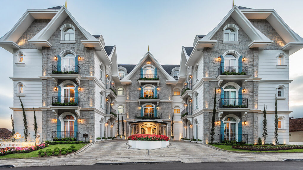 Tão fascinante quanto sofisticado, e eleito o “Melhor hotel do Mundo”, pelo TripAdvisor em 2024. o Colline de France é daqueles lugares que a gente se orgulha de estar hospedado. Com apenas 34 suítes super exclusivas, são a riqueza de detalhes luxuosos, como os amenidades L’occitane au Brésil e peças únicas inspiradas no requinte francês e nas paletas de cores de grandes grifes mundiais, que nos prendem a atenção. Todas as suítes, inspiradas na época da França Colonial, possuem características únicas onde a arte, a música, o teatro, a culinária e a paisagem da época do Império foram a inspiração deste suntuoso empreendimento. A arquitetura impactante do castelo, totalmente inspirado em um castelo francês, localiza-se em Gramado, Rio Grande do Sul. O hotel foi idealizado totalmente por seus fundadores, Clara Grings Tomazi e Jonas Tomazi, desde o design até a rica experiência gastronômica, atendimento, serviços e entretenimento, absolutamente tudo encanta e permite um viagem inesquecível e luxuosa.