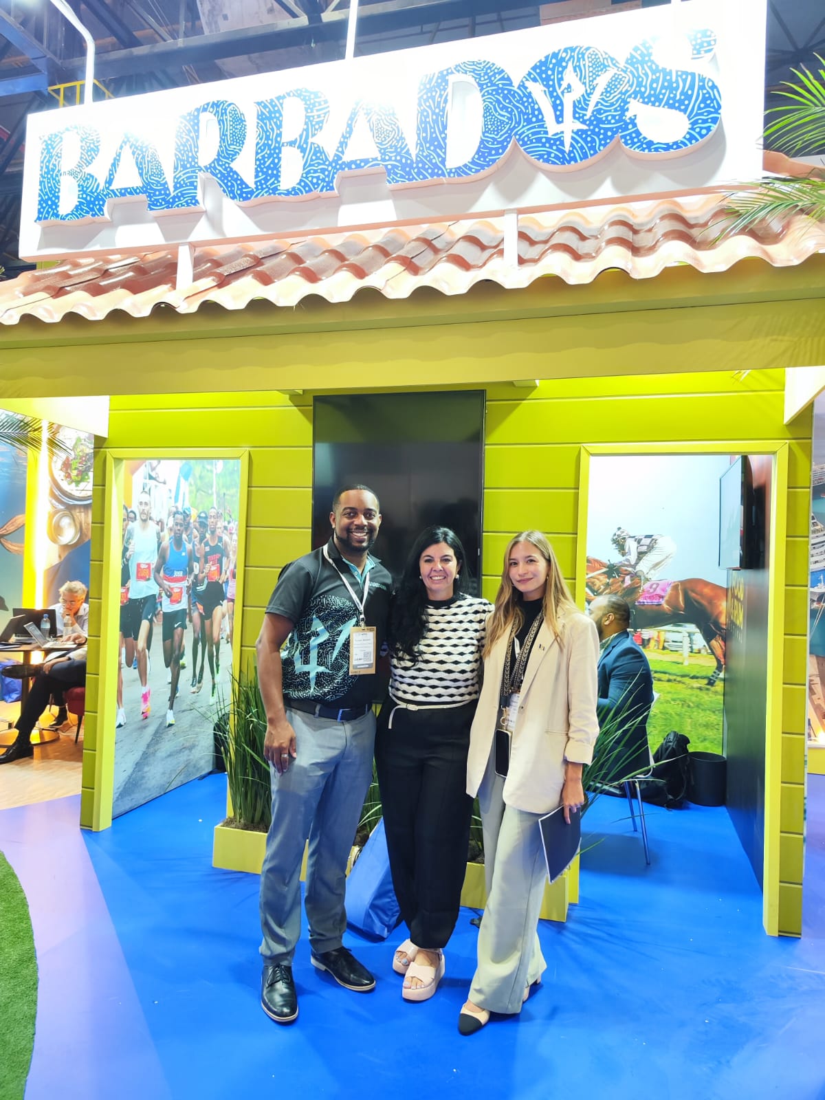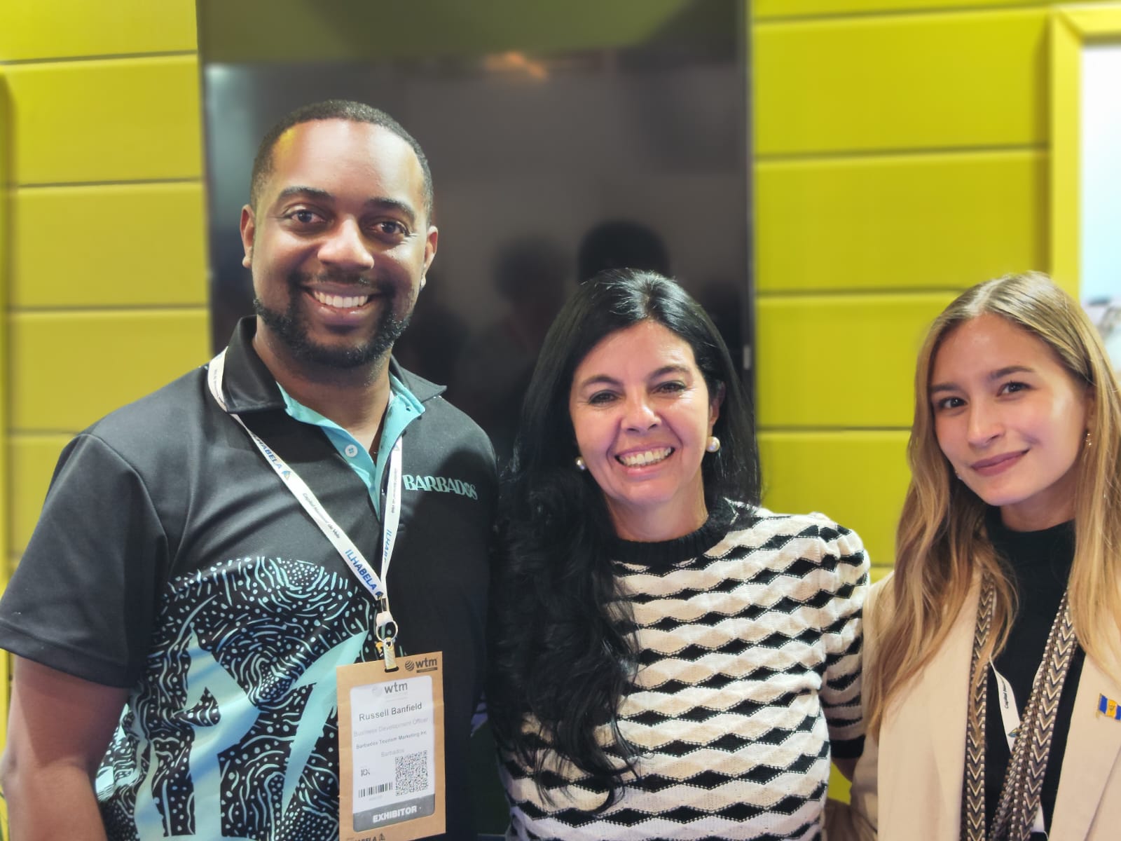 Foto (1) Cidade de Saint Michael, capital de Barbados. Créditos: Visit Barbados; Fotos (2-3) Staff de Barbados ao lado da jornalista Márcia Santos durante a WTM Latin America 2024