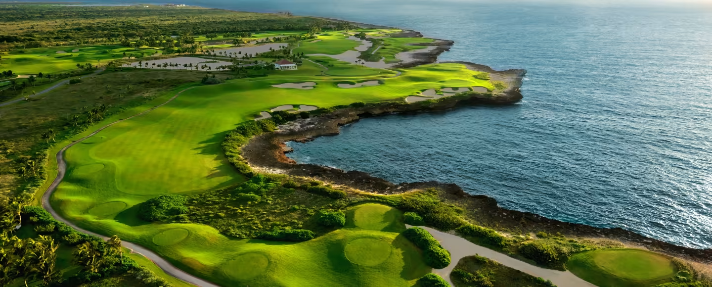 Foto (1) Corales Golf Course, Puntacana Resort, Punta Cana, República Dominicana. Créditos: Dominican Republic Tourism; Foto (2) A jornalista Márcia Santos ao lado do staff da República Dominicana; Foto (3-4) Staff da República Dominicana