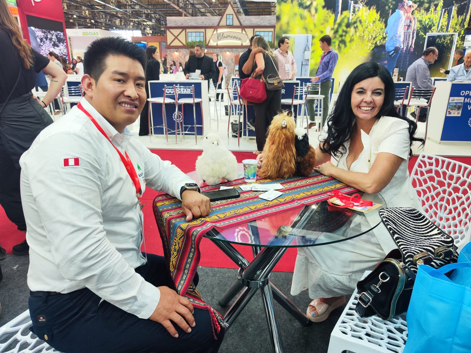 Foto (1) Vista aérea do sítio arqueológio de Macchu Picchu, Peru. Créditos: Trace Hudson (via Pexels) Fotos (2-6) Márcia Santos junto ao representante do destino e detalhes do espaço reservado ao mesmo durante a WTM Latin America 2024