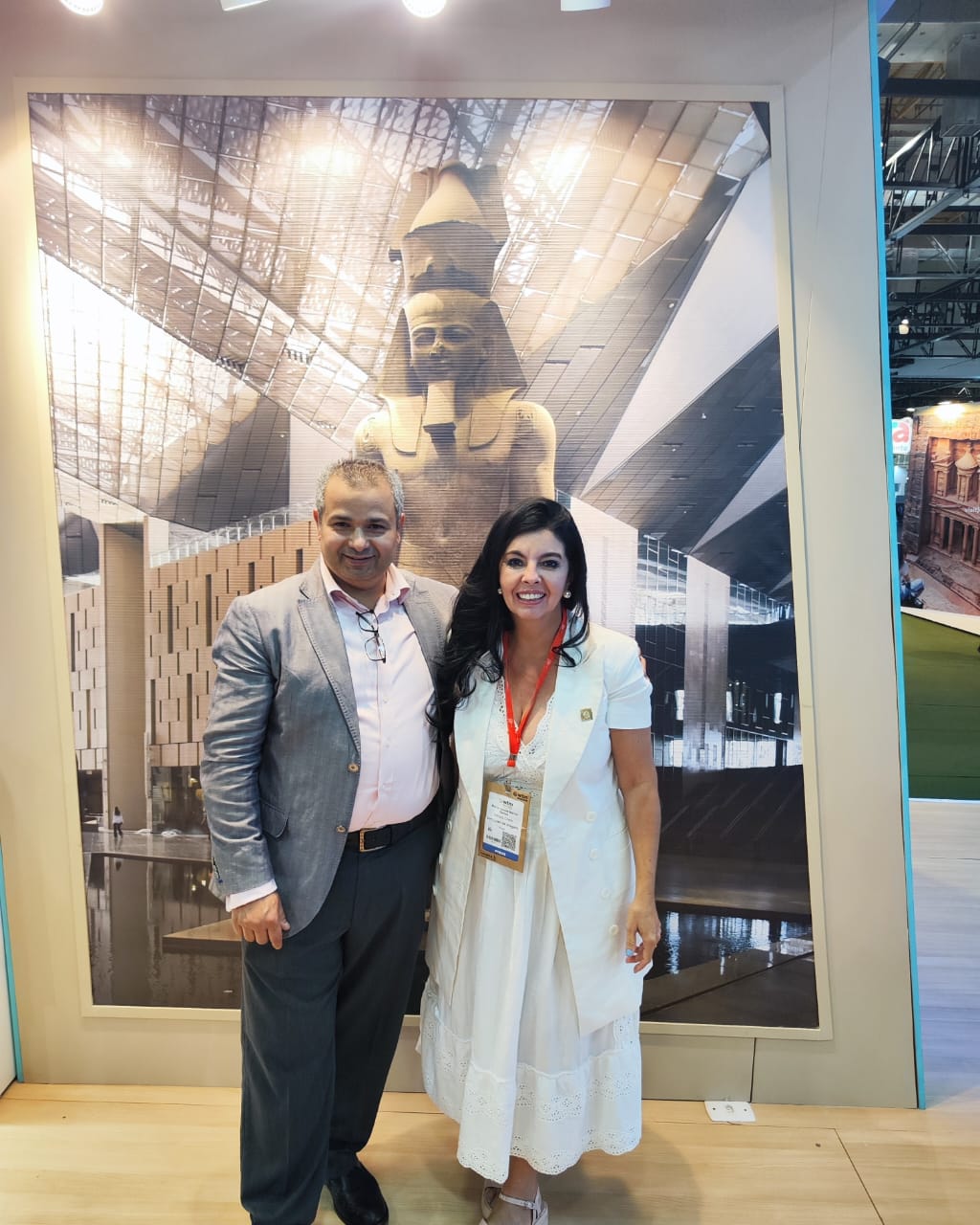 Foto (1) Pirâmides de Gizé, nos arredores da cidade do Cairo, capital egípcia. Créditos: Oziel Gómez (via Pexels); Fotos (2-4): Staff do Egito presente na WTM Latin America 2024