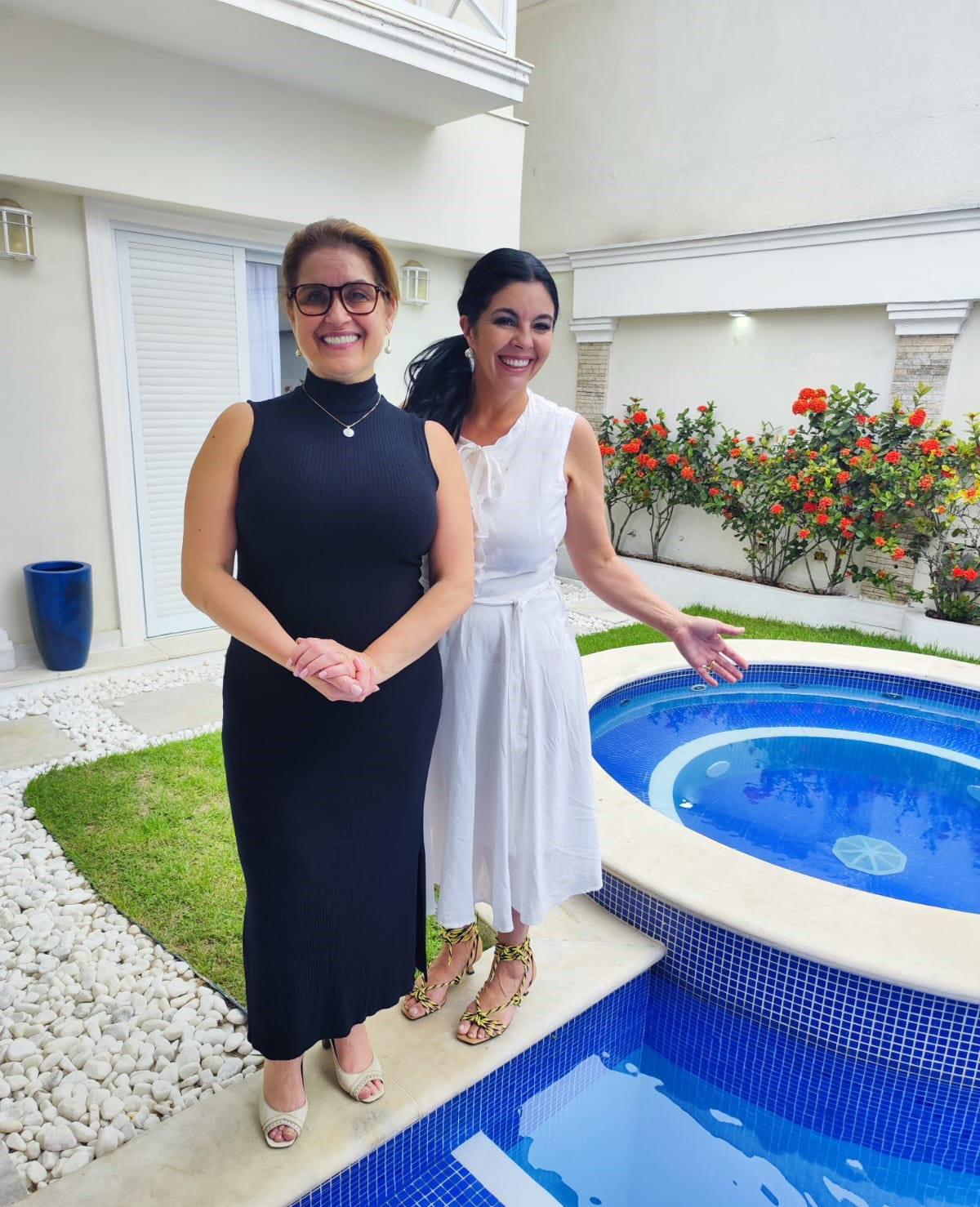 Foto 1: Flávia Guerino Peperaio; proprietária do hotel Enseada Premium Suítes; e Márcia Santos, Editora -Chefe, do Portal Um Luxo de Viagem. Foto 2: Flávia Guerino Peperaio. proprietária do Hotel; e Marcos Eduardo de Souza, Diretor do Hotel. Foto 3: Visitantes do Hotel durante evento no Guarujá. – Fotos: Divulgação.