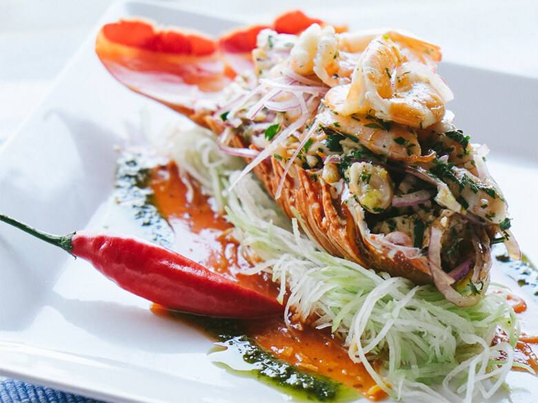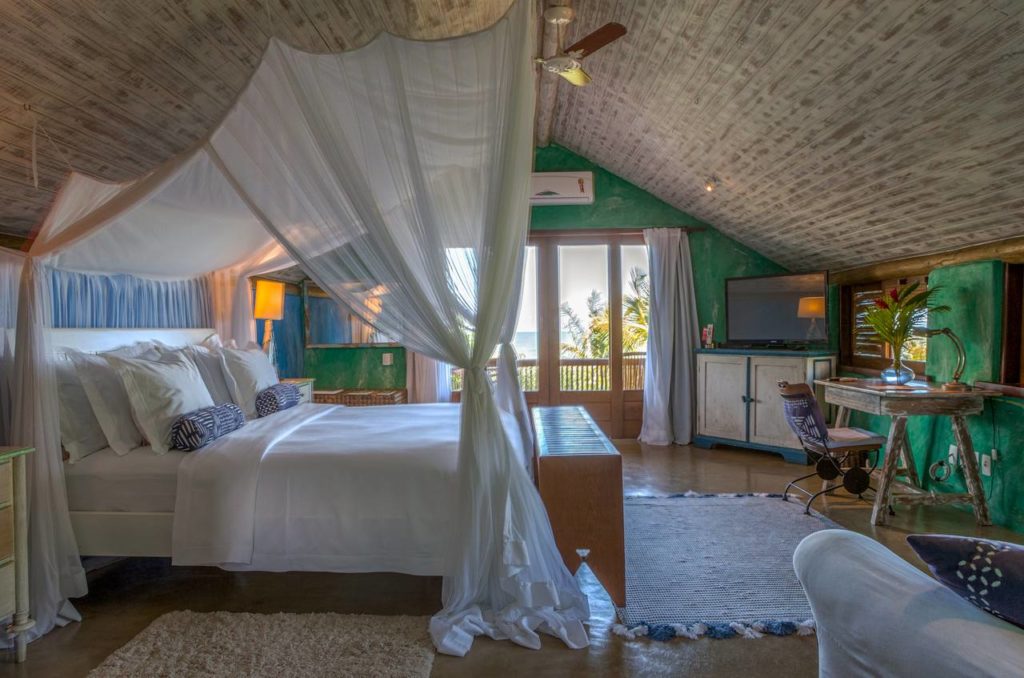 Entre as opções de hospedagem, vale destacar o bangalô Costa, um bangalô exclusivo, com vista para um mar lindo e translúcido. Com nada menos que 200 metros quadrados, conta com closet e varanda com espreguiçadeira no piso superior. Na parte inferior, há uma grande sala de estar, lavatório, além de um deck de hidromassagem, mais espreguiçadeiras e claro, uma deliciosa rede.