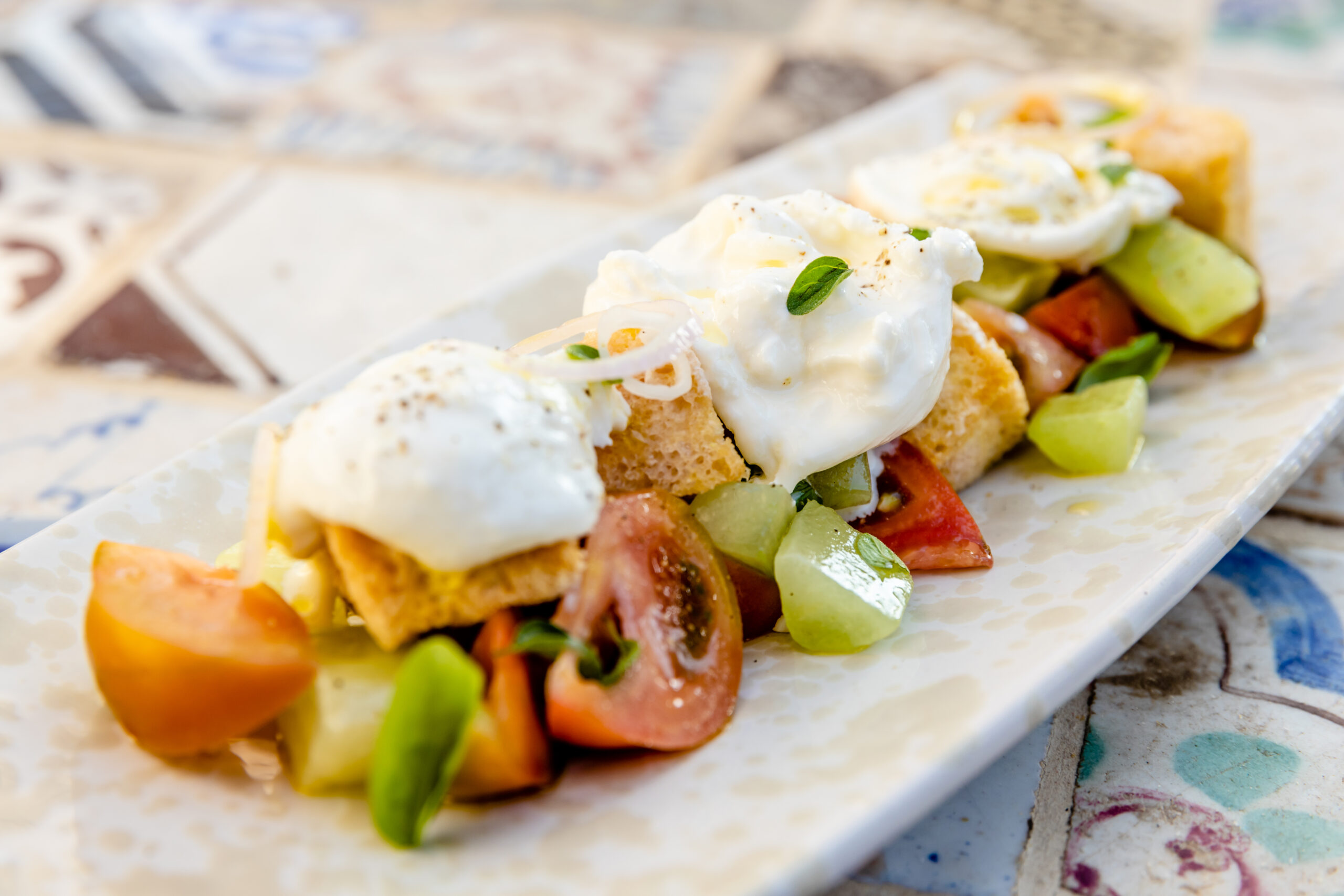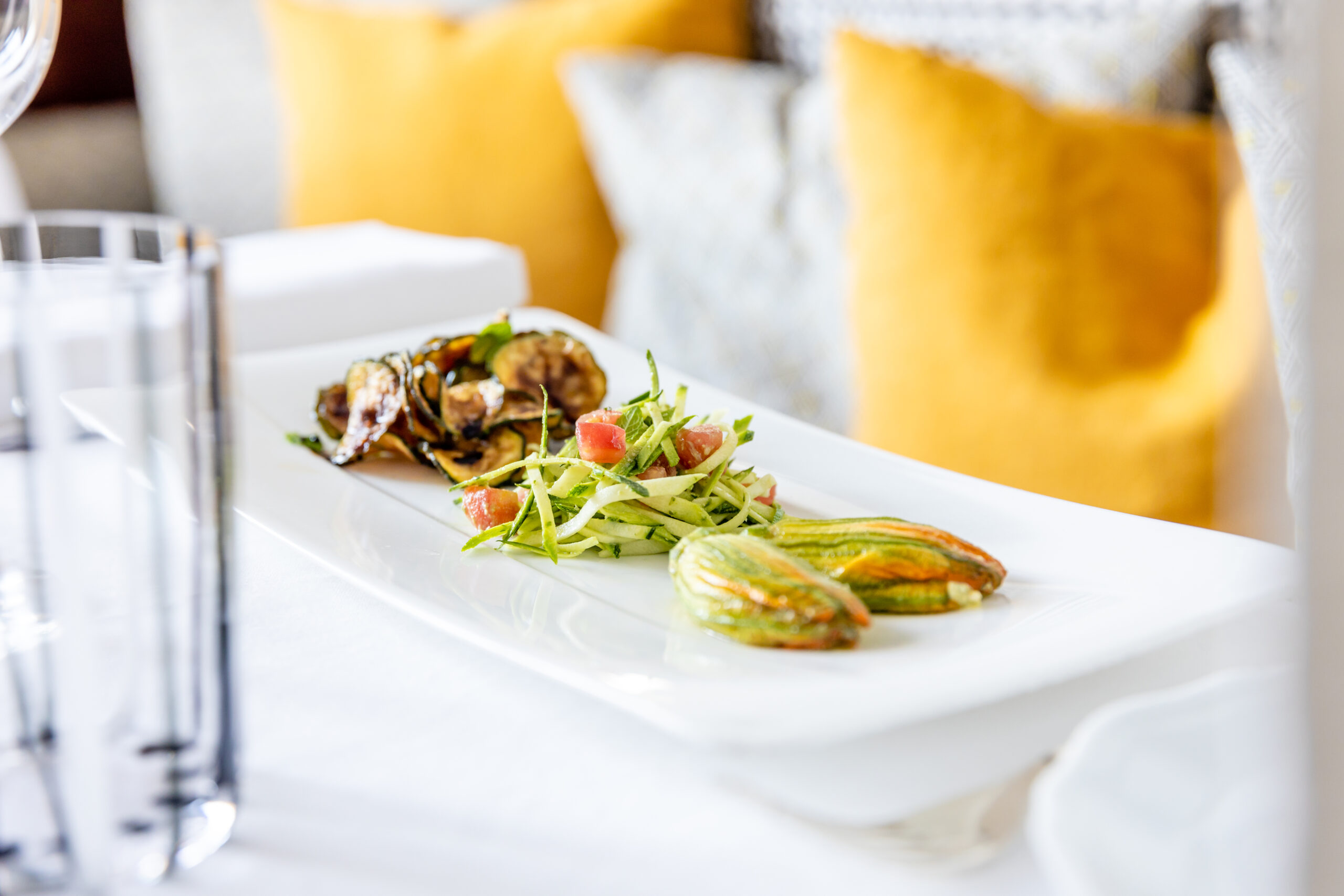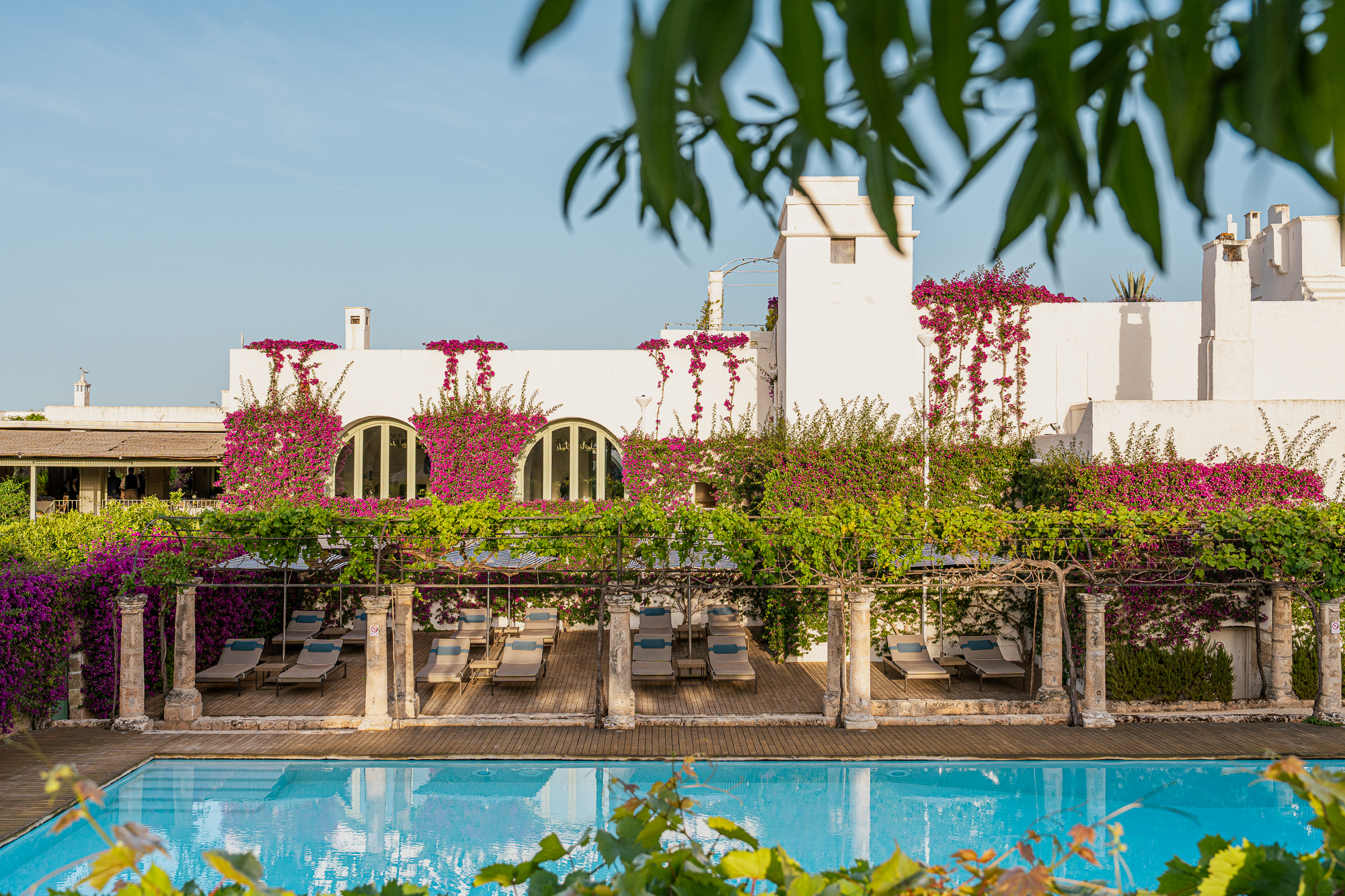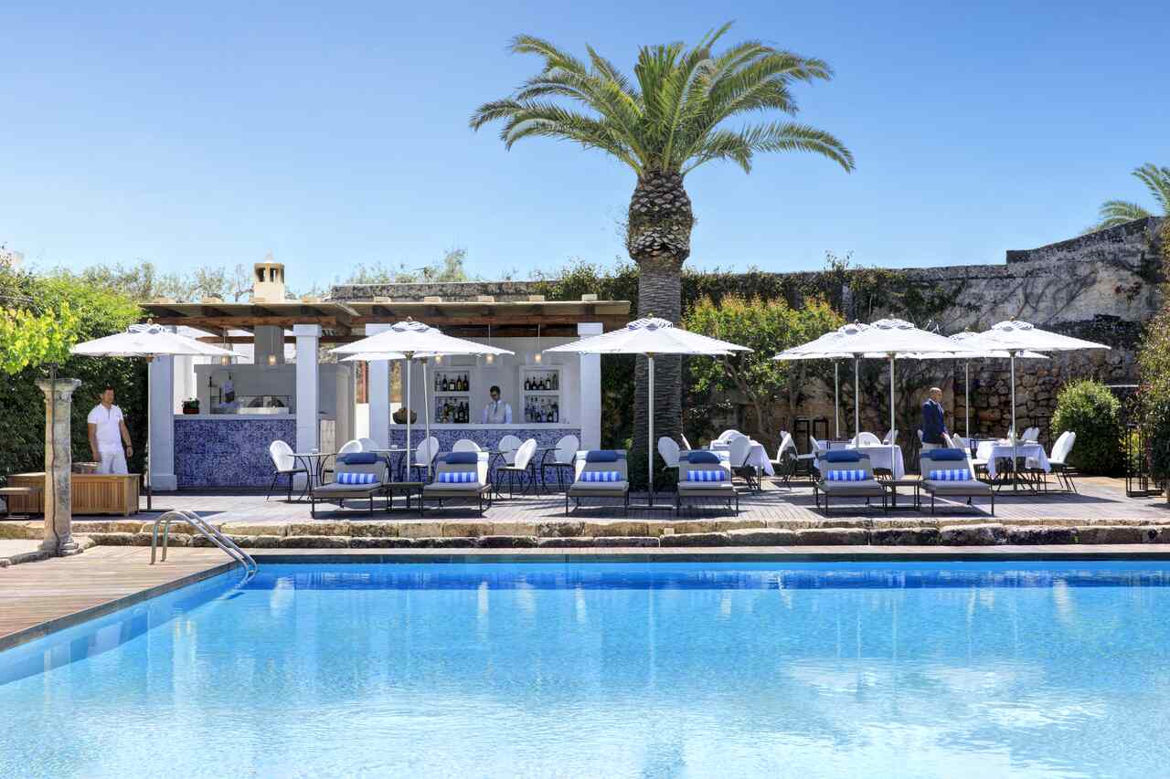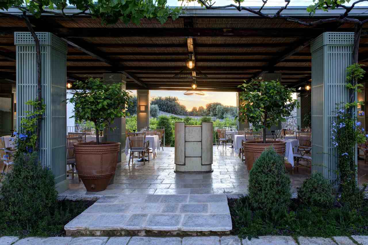 Fulvio Pierangelini, diretor criativo de gastronomia da rede, e o chef Nicola Lenoci transformam os restaurantes da propriedade em um percurso pela cultura alimentar da região. O Carosello, instalado no antigo abrigo de animais, apresenta massas artesanais, vegetais silvestres e pescados frescos. Entre os arcos brancos do Bougainvillea Bar, é possível provar drinques e petiscos leves, enquanto o bar da piscina se dedica a refeições descomplicadas sob o sol mediterrâneo.