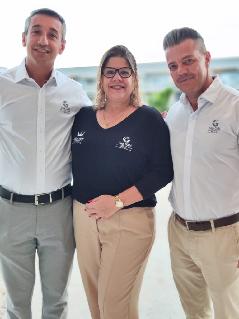 Na imagem (da esquerda para a direita): o Diretor Geral do Vila Galé, Alexandre Magno; a Diretora comercial Adriana Borges; e Miguel Such Morales, Assistente de Direção do Vila Galé