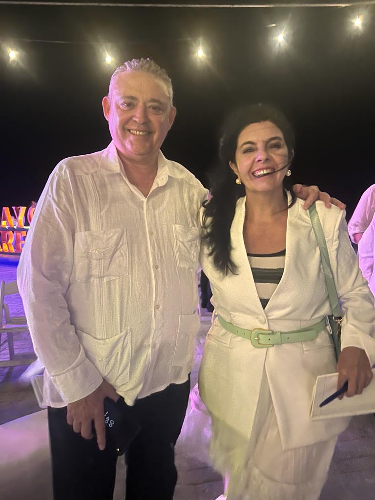 Presidente do Grupo Gaviota, Carlos Latuff ao lado da jornalista Márcia Santos, durante a abertura oficial da “Quinta Edição dos Destinos Gaviota 2023”, em Cayo Paredon Grande