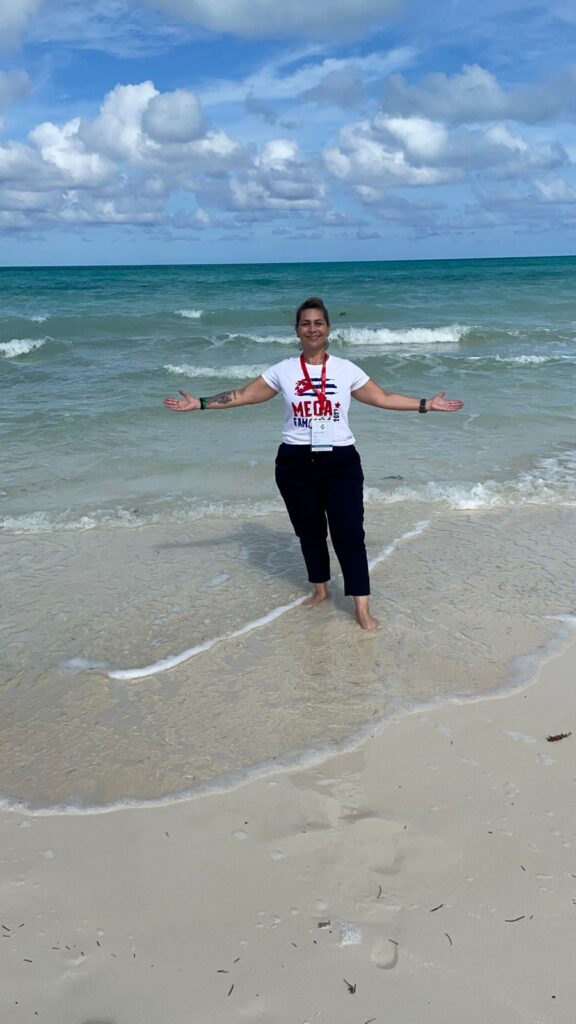 Sandra Campitelli ( aqui na praia de Cayo Cruz, antes do embarque no Crucero del Sol) Gerente Comercial de Vendas da Azabache Group, no Brasil, ficou satisfeita com o resultado do mega evento