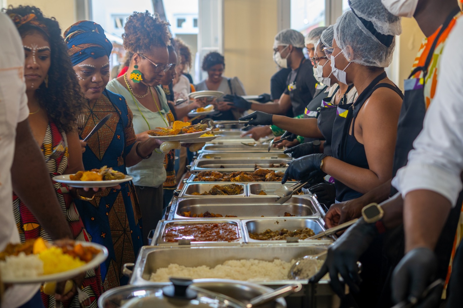 Todos os visitantes puderam se deliciar com um almoço marfinense completo, preparado pela chef marfinense Dame Sarahe (e seu staff) radicada em Brasília, fundadora da Bless Delícia e estudante de Ciências da Computação na Universidade de Brasília. Sarah tem uma capacidade ímpar. Os pratos servidos em um buffet de abundância propiciaram momentos de confraternização para o público que pôde saborear tudo no espaço charmosamente decorado do MUHCAB. Uma torre de chocolate também foi a grande atração da degustação. Conheça o cardápio servido, com os pratos caprichosamente elaborados e oferecidos nessa verdadeira viagem gastronômica: