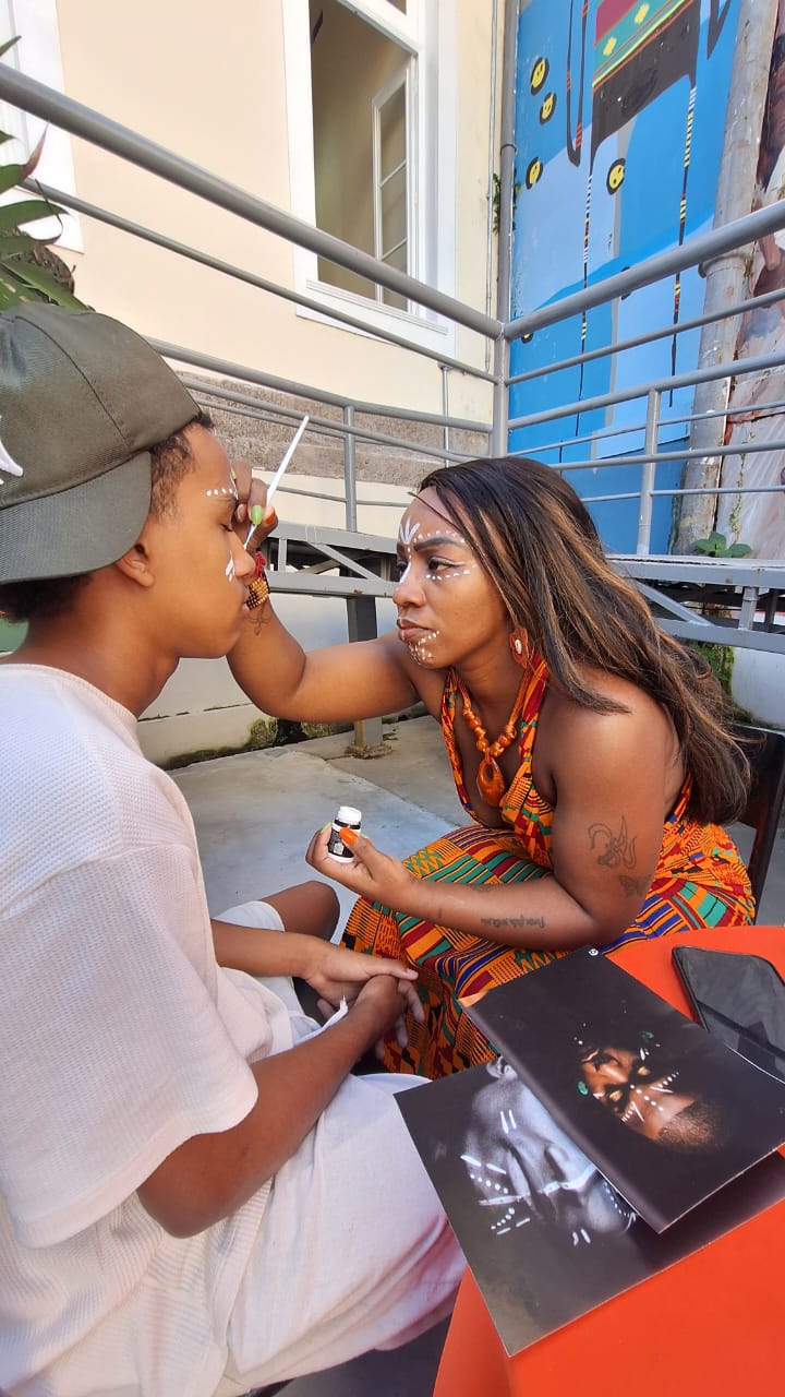 Pintura corporal africana com a artista Joyce Cristina Santos da Silva