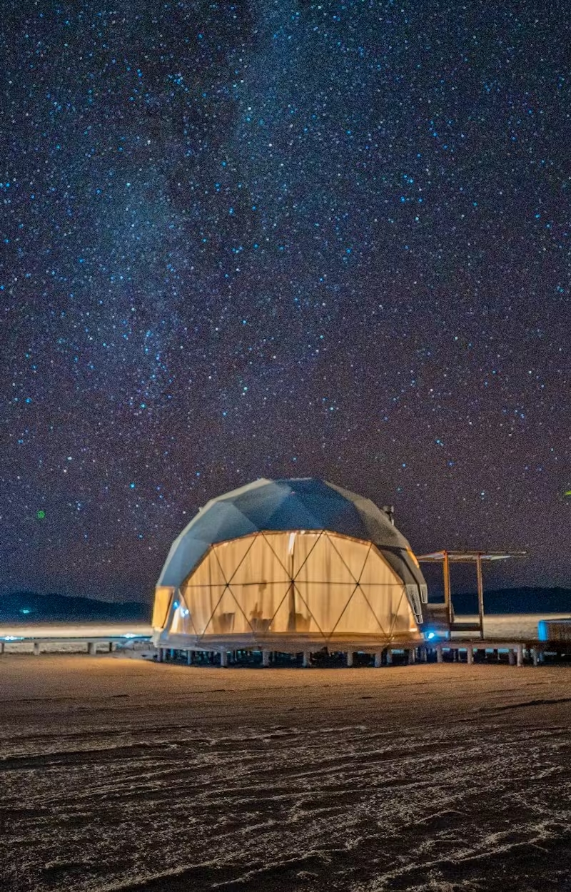 Uma experiência diferenciada para aqueles que visitam o deserto de Salinas Grandes é se hospedar em um luxuoso glamping – nome dado aos acampamentos de luxo estabelecidos na região, os quais permitem desfrutar da beleza de Jujuy de forma diferenciada